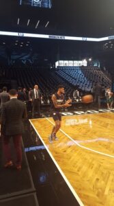 עד 16:00 הסתובבתי בברוקלין ונהנתי מהנוף המרהיב שאפשר למצוא בברוקלין ברידג', ואז עשיתי את דרכי לברקליס סנטר. השומר מחוץ לאולם היפהפה שלח אותי לכניסה מיוחדת כדי להיכנס פנימה. הכניסה באמת הייתה מיוחדת. היא הייתה מלאה בבנות בגיל שלי, כך שאמרתי לעצמי במידה והמשחק לא יהיה מעניין (אין סיבה שזה יקרה במשחק של ברוקלין לא?), יהיה לי מעניין עם שאר העיתונאיות הצעירות. אחרי עשר דקות המתנה בתור שלא כל כך מתקדם, הבנתי שאני עם המעודדות והכניסה לעיתונאים בכלל בצד השני. OH WELL… כשנכנסתי לאולם, הפעם מהכניסה הנכונה, הגעתי לקומה התחתונה שם חיכתה לי ערימה של תיקי שידור. כדי שתבינו כמה מידע יש בתכנייה הזאת, רשום שם איזה ז'אנר של סרטים הוא המועדף על אלפריד פייטון, ואיך קוראים לילדה של קני אטקינסון. רפרפתי בקצרה, ומיד אחר כך הטענתי את המחשב כדי להתחיל לכתוב את הכתבה.