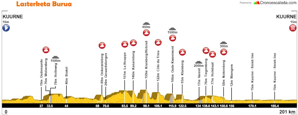 מירוץ קורן-בריסל-קורן של היום הוא עוד מירוץ בסגנון הקלאסיקות, אלא שהוא בעל תוואי קל יותר מקודמו. הוא כולל פחות עליות וקטעי פאבה, ו-50 הק"מ האחרונים שלו שטוחים לחלוטין. המשמעות כאן היא שבנוסף לפייבוריטים הרגילים מקבוצת הקלאסיקנים, היום תהיה הזדמנות גם לרוכבים כמו גאביריה או טרנטין לזכות במירוץ. שידור ביורוספורט 2 ב-15:30.