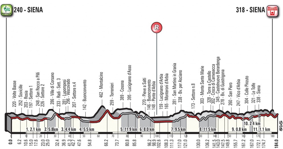 *המלצת צפייה* מירוץ סטראדה ביאנקה (הדרך הלבנה בתרגום לעברית) הוא אחד המירוצים הייחודיים ביותר בלוח השנה של מירוצי האופניים. המירוץ, המתחיל ומסתיים בסיינה, ונערך על הדרכים הציוריות של טוסקאנה, ייחודי בשל תנאי המסלול שלו – חלק גדול ממנו כולל דרכי עפר, המסומנות באפור בציור. בנוסף, הוא כולל לכל אורכו עליות קצרות ומרובות, כולל אחת בשיפוע של 16% לכיכר המרכזית של סיינה. קברניטי ה-UCI הכירו בייחודיות של המירוץ בשנה שעברה, והפכו אותו לחלק מסבב הוורלד טור. נבחרת הרוכבים שהגיעה למירוץ של השנה מרשימה בכל קנה מידה, וכוללת תמהיל של קלאסיקנים ומטפסים. בין הקלאסיקנים ניתן למצוא את זוכה המירוץ הקודם, מיכל קביאטקובסקי, אלוף העולם פטר סאגאן, רוכב השנה של 2017, גרג ואן אוורמארט, וכן פיליפ ז'ילבר, ספ ואן מארק, אדוואלד בואסון האגן ויאספר סטויבן. בין המטפסים נמצא את אלחנדרו ואלוורדה, וינצ'נזו ניבאלי, טום דומולאן, רומאן בארדה, אלכסיי לוטסנקו ודייגו רוסה. סוס שחור שיכול להפתיע כאן הוא אלוף העולם הכפול בסייקלוקרוס, ואוט ואן אארט. הנבחרת המגוונת, יחד עם תנאי מזג האוויר השוררים באירופה בתקופה הנוכחית, הופכים את המירוץ לבלתי צפוי ומרתק. שידור ביורוספורט 2 ב-15:00.