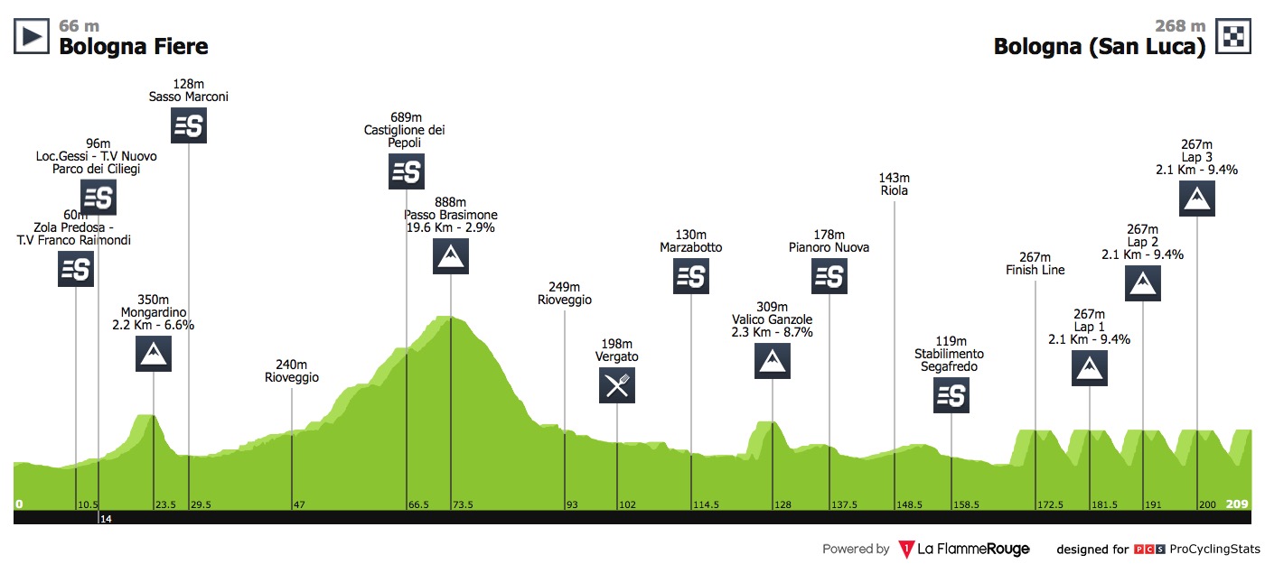 הג'רו דל אמיליה הוא אמנם לא מירוץ וורלד טור, אך מדובר במירוץ פופולרי למדי, שגם מהווה הכנה טובה לאיל לומברדיה בשבוע הבא, מה שיביא לכאן היום רבים וטובים. המירוץ כולל כמה טיפוסים ומסתיים בחמש עליות קצרות יחסית באיזור קו הסיום בבולוניה. בין המשתתפים נראה כאן כמה מטובי המטפסים בענף. זה כולל את סיימון ייטס, וינצ'נזו ניבאלי, רומאן בארדה, תיבו פינו, מיגל אנחל לופז, באוקה מולמה, איגן ברנאל ומיקל לאנדה (השניים האחרונים חוזרים מהפציעות אחרי מירוץ סן סבסטיאן). גם סייקלינג אקדמי תשתתף עם בן הרמאנס המוביל וגיא ניב שלנו. שידור ביורוספורט ב-16:00.