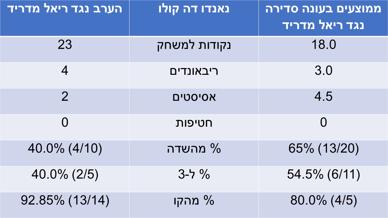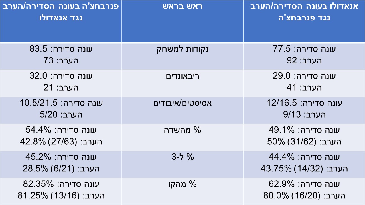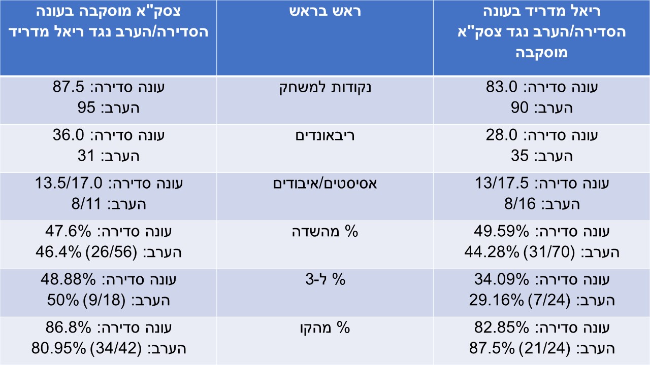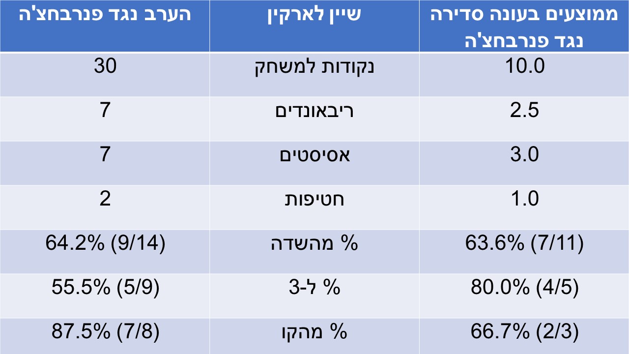 נתונים ראש בראש בעונה הסדירה לעומת הערב: