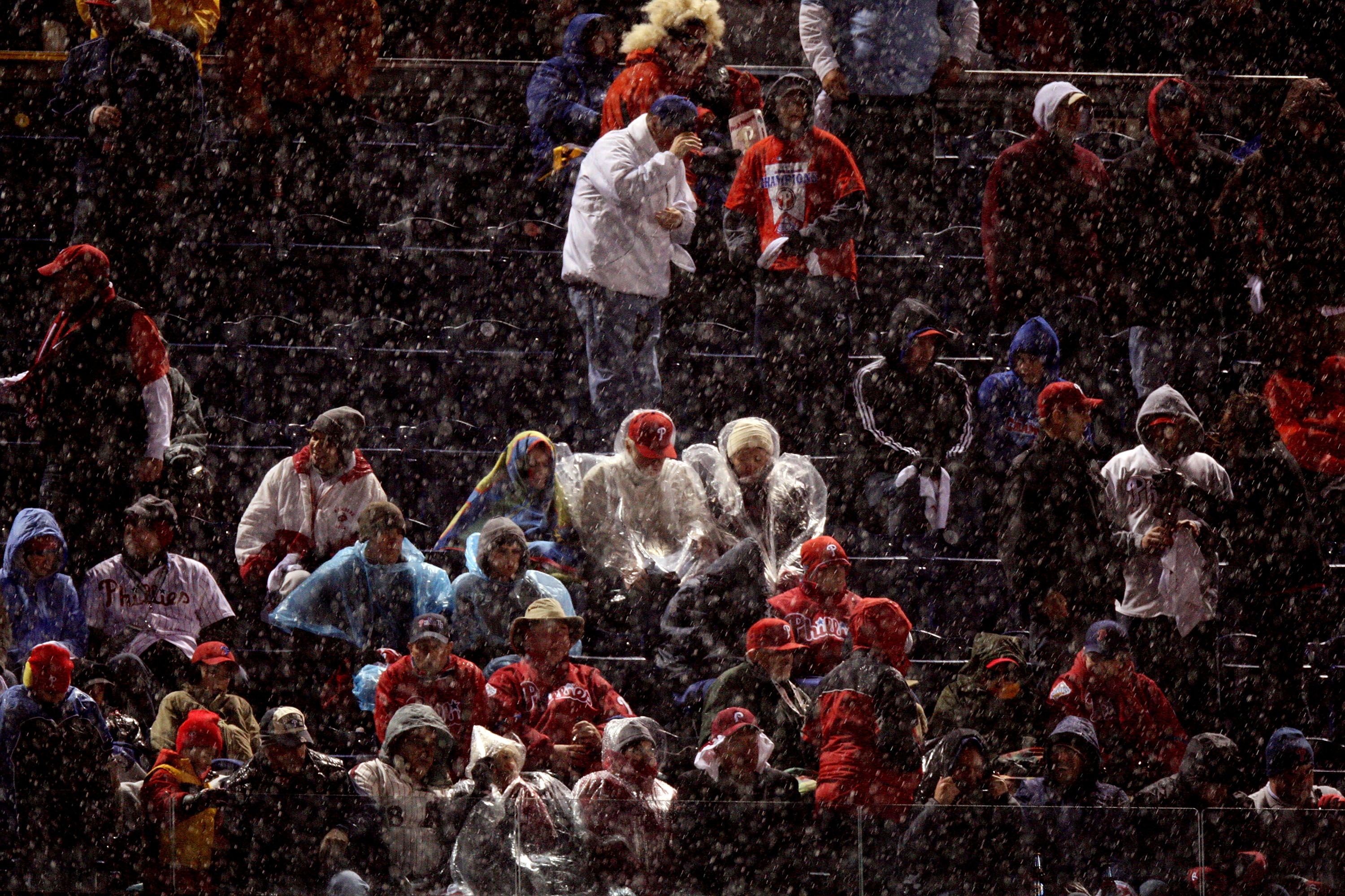 בשל העובדה שב-קורס פילד מורכבת מערכת חימום תת קרקעית, היתה התלבטות האם לשחק, אך מספר תאונות סביב האצטדיון בשל כביש חלק הכריעו את הכף. המשח התקיים למחרת, וגם זה לא היה ממש "יום של קיץ". בתחילת המשחק נמדדו שתי מעלות, שכנראה ירדו למטה במהלכו. לפחות לאוהדי הפיליס נצמא קצת "חום בלב", כשהקבוצה שלהם ניצחה את שני המשחקים, 5:6 ו-4:5, והמשיכה לוורלד סירייס.