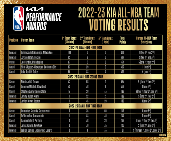 רגע לפני שריקת הפתיחה של משחק מספר 5 בגארדן בין הניקס להיט, פורסמו תוצאות ההצבעה לחמישיות העונה.