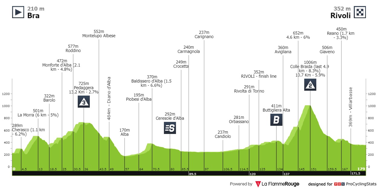 קטע 12 נשאר באיזור טורינו, כשהעניין העיקרי בו יהיה הטיפוס מדרגה 2 במרחק 30 ק"מ לסיום. נראה לגמרי כמו קטע לבריחה, שצפוייה להיות היום גדולה ומשמעותית. שידור ביורוספורט 1 ב-12:15.