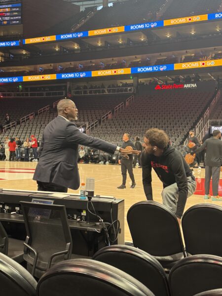 טריי יאנג לעומתו יצא ממש חצי שעה לפני תחילת המשחק, חימום קטן של כמה ספרינטים וישר התחיל לצלוף שלשות, יאנג גם "נלכד" בשיחה צפופה עם אגדת ההוקס דומיניק ווילקינס, זה יפה לראות שדומיניק לא רק מגיע לפרשן את המשחקים של ההוקס אלא גם משמש כסוג של מנטור לשחקנים של הקבוצה. יאנג גם מצא זמן להגיד שלום לאוהד מיוחד שבא לפגוש אותו ולבש את הגופייה שלו, את החיוך של הילד אי אפשר היה להוריד מהפנים.