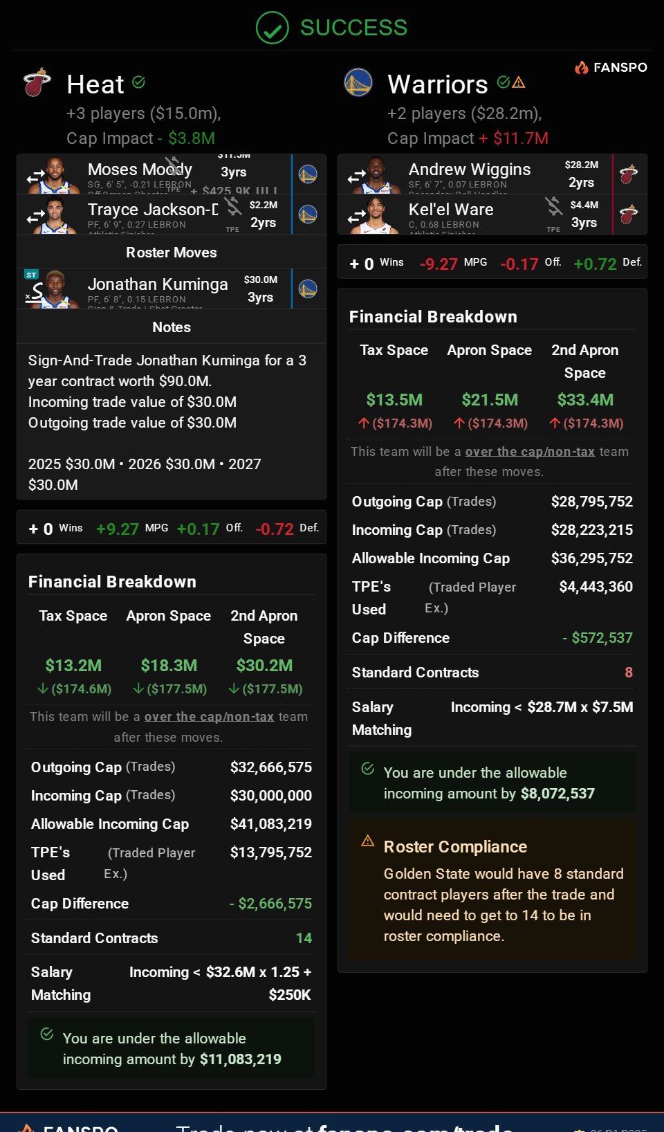 כאוהד מיאמי לוקח בקלות את קומינגה על וויגינס. אני חושב שהוא שחקן שיכול לתרום יותר בכל מערכת שתשחק על החוזקות שלו, מה שלא כל כך קורה בגולדן סטייט
