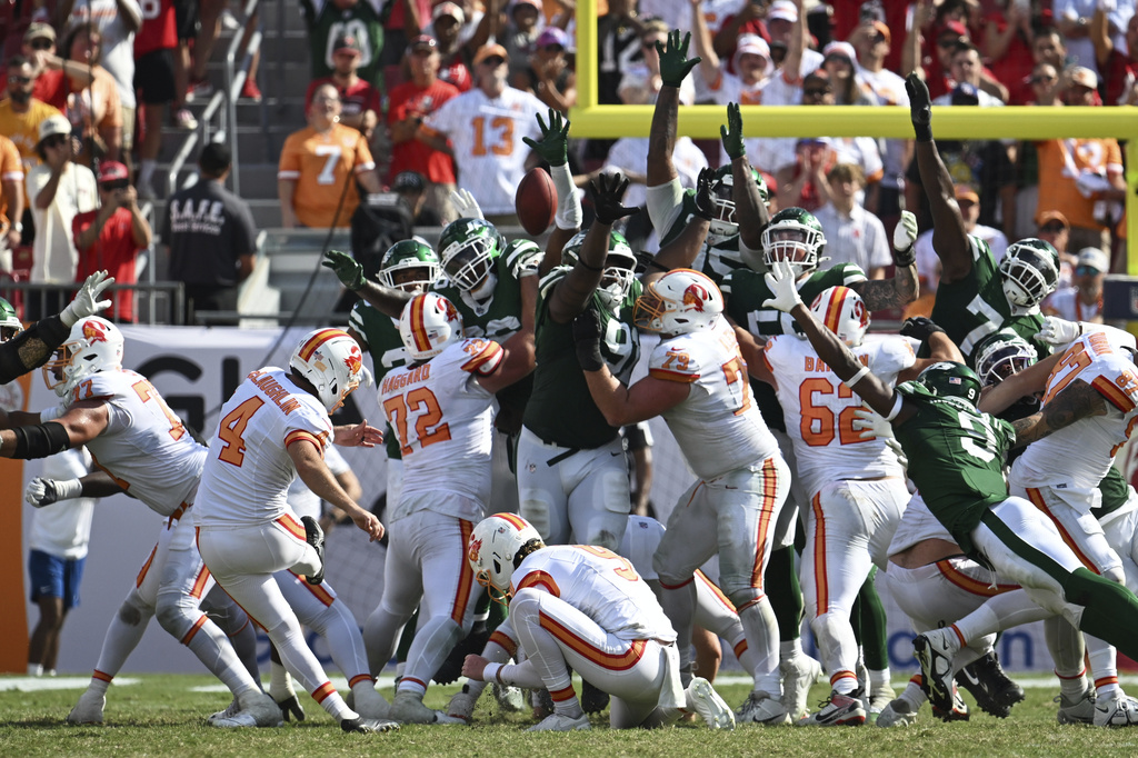 עד תחילת הרבע הרביעי, התנהל לו המשחק כצפוי בשליטת הבאקנירס, שעלו ליתרון 6-23 על הג'טס החלשים, והרבע האחרון נראה לפרוטוקול בלבד. רק שאז התעוררו להם הג'טס עם רבע משוגע, ואחרי חסימה דרמטית של ניסיון לשער שדה, וויל מקדונלד אוסף את הכדור, רץ לט"ד של חמישים מטר, מעלה את הג'טס במהפך מדהים ליתרון נקודה, ומהמם את 63,000 האוהדים ביציעים. נגמר? לא כשמדובר בג'טס. בייקר מייפילד מוביל דרייב בזק של 49 יארדים בפחות מדקה, והבועט צ'ייס מק'לופלין מסיים את הקאמבק עם בעיטה מדויקת ממרחק 36 יארדים, משאיר את טמפה ביי כאחת משש קבוצות עם מאזן מושלם. הג'טס מצידם עדיין במאזן אפס בעמודת הניצחונות, ובשבוע הבא הם מתארחים במיאמי, למשחק מול עוד קבוצה נטולת ניצחון.