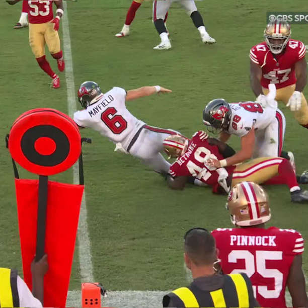 לפני המשחק, מצבת הפצועים של הבאקנירס כללה את שני התופסים המובילים של הקבוצה, מייק אוונס וכריס גודווין, ואת הרץ האחורי המוביל באקי אירווינג, אבל עבור הקווטרבק בייקר מייפילדה עסקים כרגיל, ובמשחק מרשים הוא מחלק מסירות בצורה סופר מאוזנת לחמישה תופסים שונים, רושם ריצה קריטית אחת של 15 יארדים אחרי התחמקות הירואית משני מגינים שעטו עליו, ובמו ידיו מביא את הניצחון החמישי העונה לטמפה ביי. הניינרס ניסו להשיב מלחמה שערה, ובמשך כמעט שלושה רבעים הם אכן עמדו בכבוד במשימה, אבל אז תש כוחה של ההגנה, ההתקפה המוגבלת לא ממש עזרה למצב עם שער שדה בודד בכל המחצית השניה, ובסאן פרנסיסקו סופרים הפסד שני בשלושת המשחקים האחרונים. הקווטרבק מאק ג'ונס לא שיחק טוב הפעם, ומשחק הריצה של הניינרס הופך לבעיה של ממש, והוא מדורג כרגע אחרון בליגה בט"ד על הקרקע עם אחד כזה בלבד בשישה משחקים.