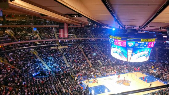 אני עולה מהפרקט למושב שלי ואז ההצגה מתחילה – האולם כמעט מלא והאוהדים של הניקס חמים עם שריקות בוז בהצגת שחקני שיקגו ותרועות רמות בהצגת שחקני הקבוצה הביתית שכוללת מופע אורות מרהיב ואפילו זיקוקים לסיום ומגיעות לשיא בהצגת הכוכב הבלתי מעורער של הקבוצה ג׳יילן בראנסון.
