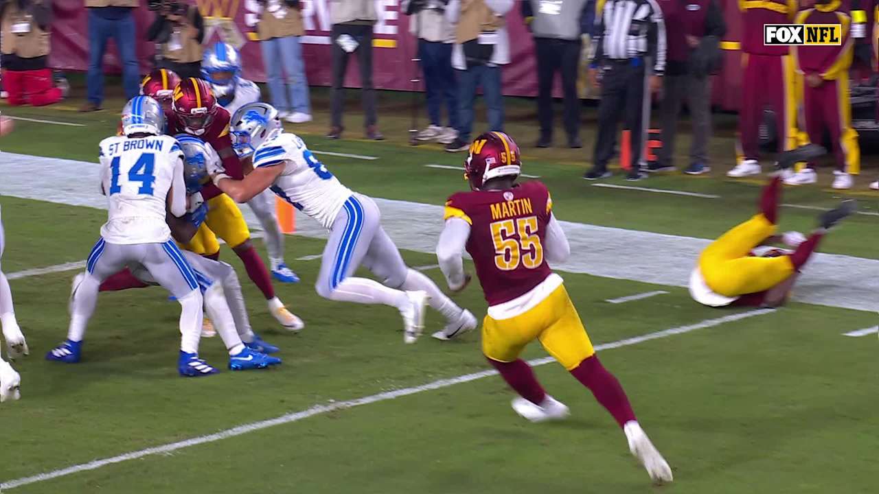 אחרי ההפסד המאכזב לוויקינגס בשבוע שעבר, הגיעו הליונס לביקור בעיר הבירה, והתפוצצו התקפית על ההגנה החלשה של הקומנדרס. התקפת דטרויט סיימה משחק שלם ללא בעיטת פאנט אחת לרפואה, רושמת נקודות בשמונה מתוך תשע מהחזקות הכדור שלה, ומשיגה שיאים עונתיים ביארדים בריצה (226) ויארדים כוללים (546). ג'רד גוף מסיים עוד משחק מצוין, והוא מוביל כרגע את הליגה באחוזי השלמה (74.0%). גם לרץ האחורי ג'אמיר גיבס היה משחק משובח של 142 יארדים ושני ט"ד בריצה, ועוד ט"ד בתפיסה. הקומנדרס שיחקו ללא הקווטרבק הפותח ג'יידן דניאלס, ובלעדיו ובלי משחק הגנה ראוי לשמו, הם לא היוו יריב הולם לליונס בכל שלבי המשחק.