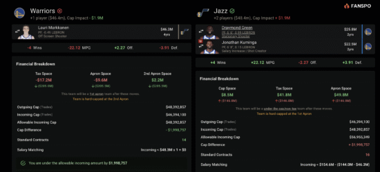המחיר הדמיוני אותו יאנג ביקש על מארקנן לפני כמה שנים ירד מהפרק, אך במחיר יותר סביר יוטה מקבלים פרוספקט ומנטור לכל הקייטנה הזו שיש להם שם ואולי סוף סוף יצא להם משהו מהפרויקט הזה, גולדן סטייט מקבלים PF מרווח עם כדרור טוב יחד פוסט ג׳ימי ומלטון הם הופכים לאחת הקבוצות הגדולות בליגה. אישית זה הטרייד שאני הכי אוהב (פרט לאחרון)