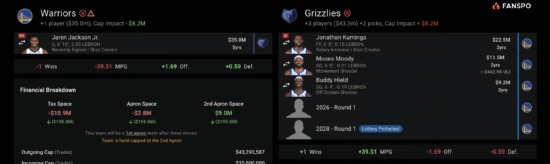 בתמורה, ממפיס תקבל בחירה לא מוגנת בדראפט של השנה הבאה — מחזור שגדוש בכישרון — ועוד בחירה מוגנת שנתיים קדימה. גולדן סטייט, מצידה, מקבלת שחקן עילית בעמדת הפורוורד/סנטר, כזה שמתאים לציר הזמן של “השנים האחרונות של סטפן קרי”, וגם כזה שהמערכת הנוכחית באמת יודעת להעצים.