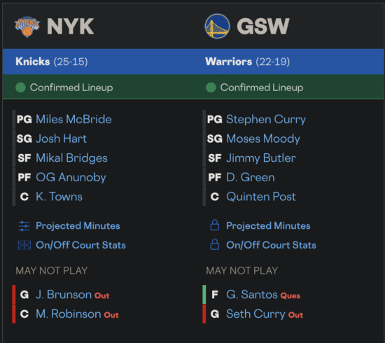 לגבי המשחק – גולדן סטייט בתקופה טובה יחסית ובסגל הכמעט מלא הנוכחי נראה שיש רוטציה טובה. אם היכולת הזאת תמשיך אולי יהיה אפשר לדבר על טופ 6 בהמשך