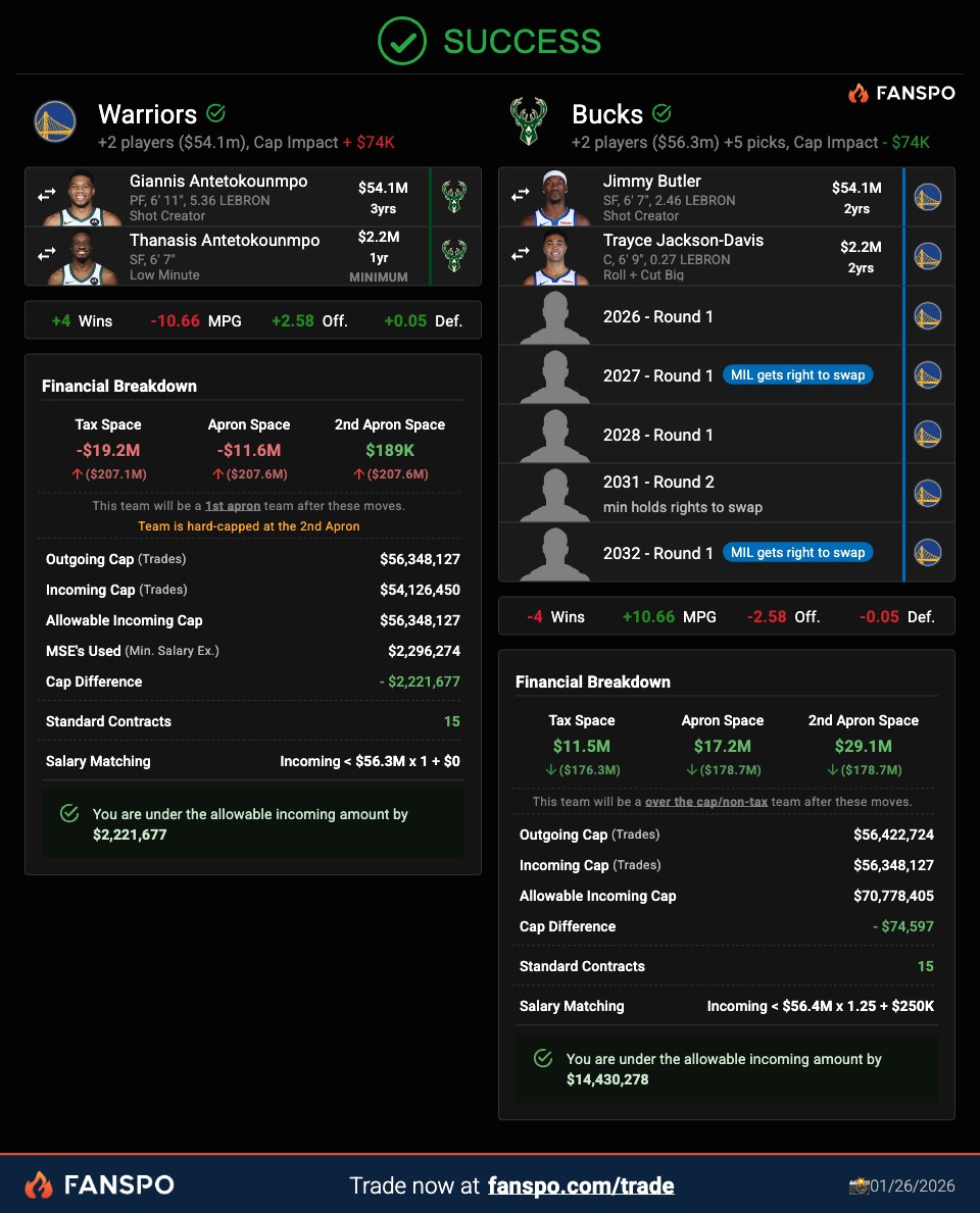 זה יותר טוב מהטרייד שדאלאס עשו לפני שנה, אבל טרייד נורא מבחינת הלייקרס. טרייד של יאניס על לברון הלייקרס יקבלו בשמחה