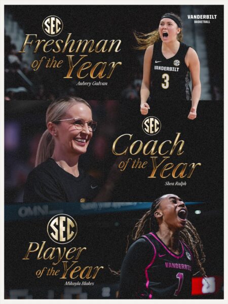 ואנדרבילט, בעונתה הטובה ביותר מזה שנים סיימה במקום השני בקונפרנס ה־SEC החזק, בעונה שעלתה על כל התחזיות וגרמה ללא מעט פרשנים לאכול את הכובע. ההצלחה לא באה לידי ביטוי רק במיקום בטבלה, אלא גם בתארי סוף העונה של הקונפרנס: מיקיילה בלייקס נבחרה לשחקנית העונה, אוברי גלוואן לפרשמנית העונה, ושיאה ראלף למאמנת העונה – דבר המעיד על התקדמות מקצועית של המכללה, ואולי אולי חזרה לימיה הגדולים בשנות ה־90, אז העפילה לפיינל פור (1993).