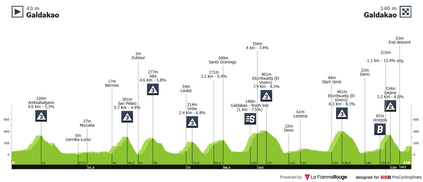 קטע 4 של היום הוא קטע מעגלי, המתחיל ומסתיים בעיירה גלדאקו. הקטע כולל שבעה טיפוסים מדרגות 2-3, כולם די קצרים, ושני האחרונים תלולים למדי. יכול במידה שווה ללכת לחברי ה-GC או לקבוצת בריחה, זאת אם המובילים במירוץ יחליטו לשמור כח לקטע הקשה של מחר. ניתן לצפות במירוץ החל מהשעה 15:20 ביורוספורט או בלינק הזה או בלינק הזה.