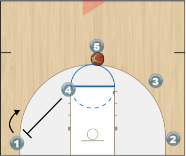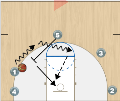 פוקס (1)מחליט שלא מתאים לו לזרוק, הוא ממשיך ישירות לכדרר למרכז לחסימה של וומבי(5-פיק אנד רול).