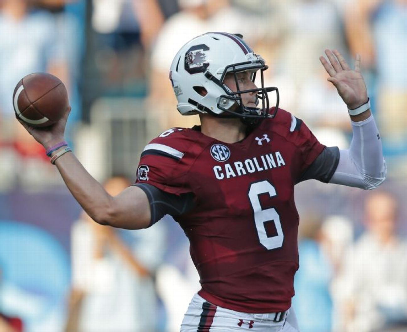 (קונור מיץ', הקוורטרבק של דרום קרולינה, מוביל לנצחון על צפון קרולינה 13-17 במשחק פתיחת עונת הפוטבול של המכללות)