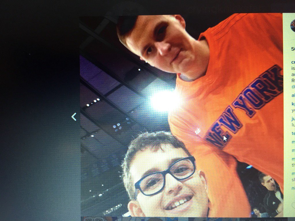 זוכרים את תמונת הילד שכיסה את פניו ופרץ בבכי כשהניקס בחרו את פרוזינגס בדראפט? מחלקת המדיה של הניקס איתרה את הילד ואירגנה פגישה בין השניים. הילד עתה מחייך מפה לפה.. * .