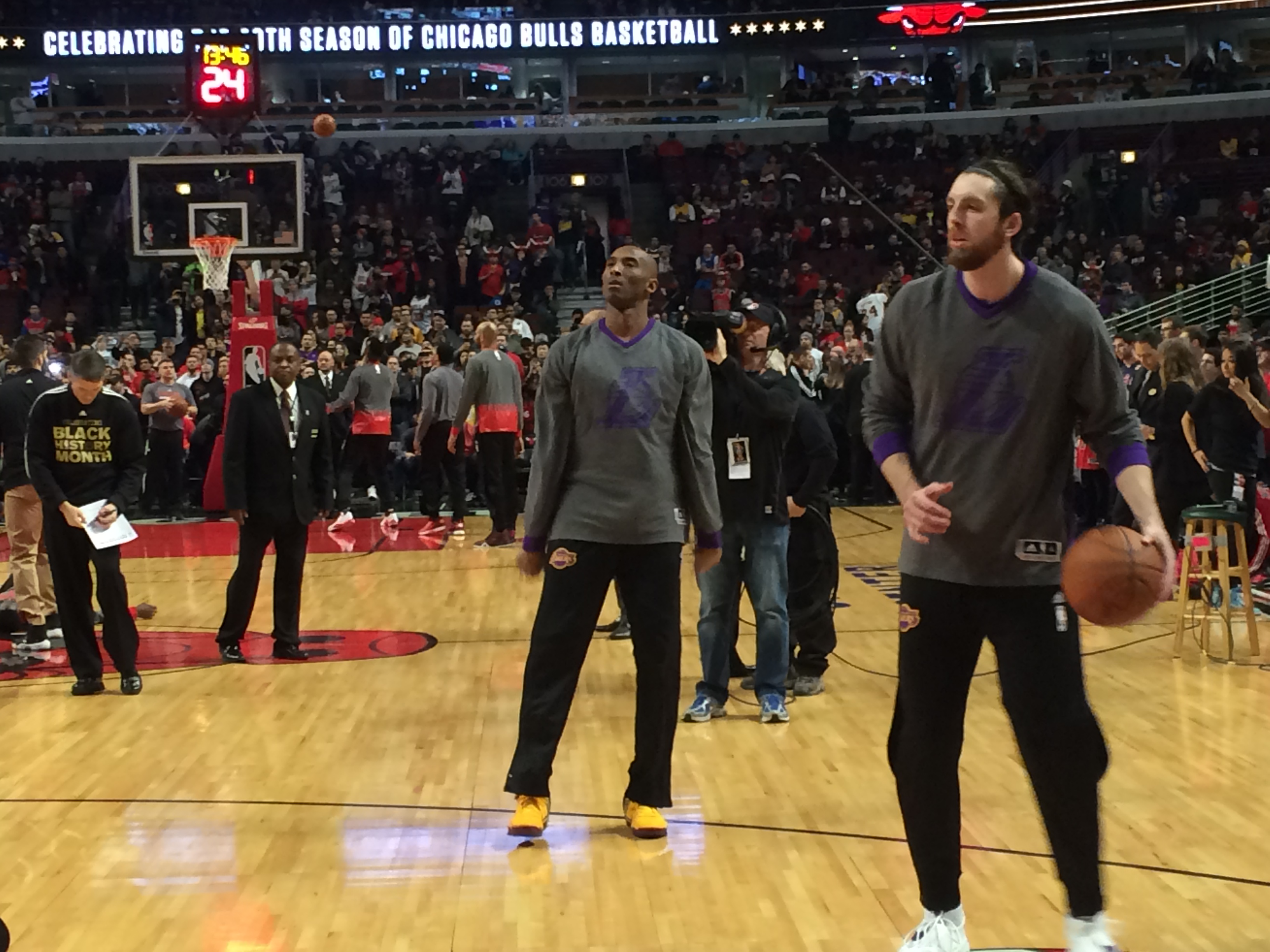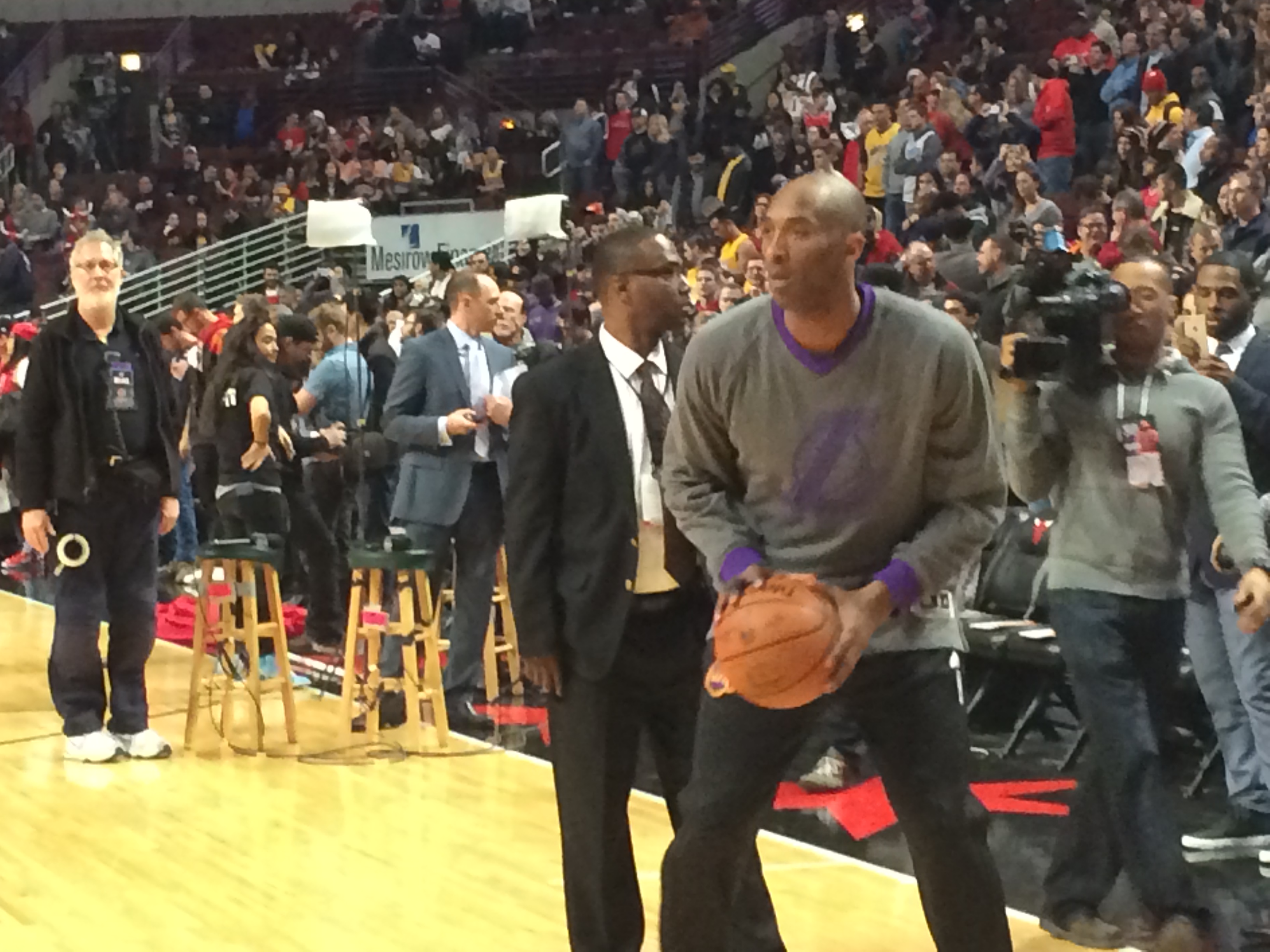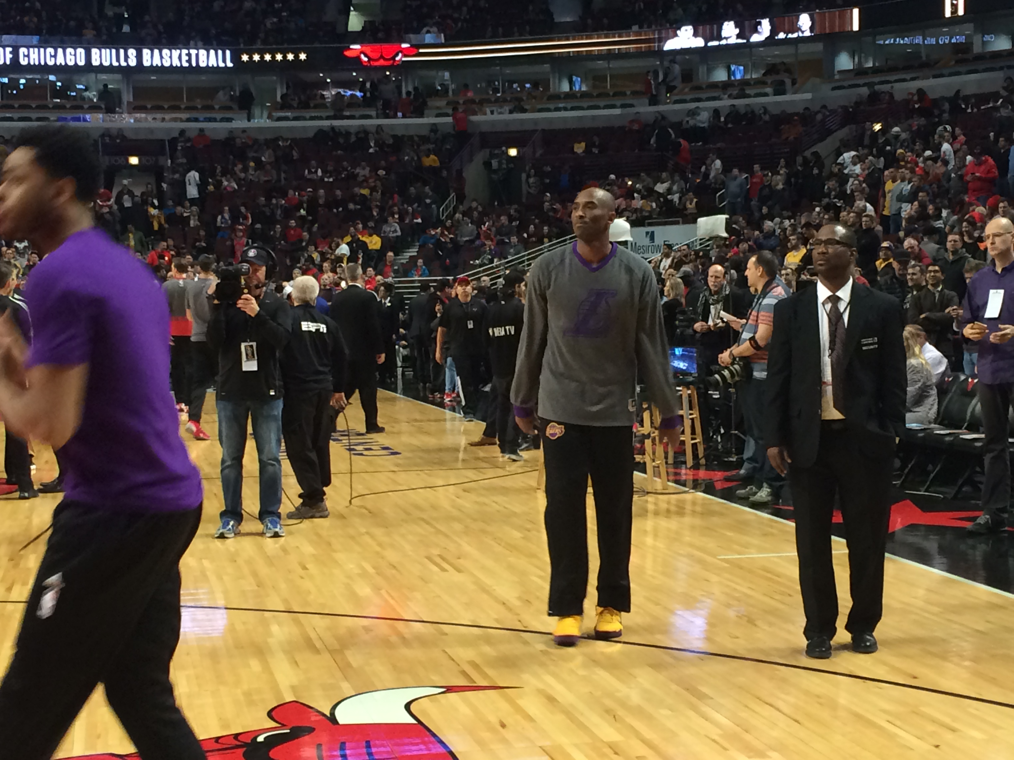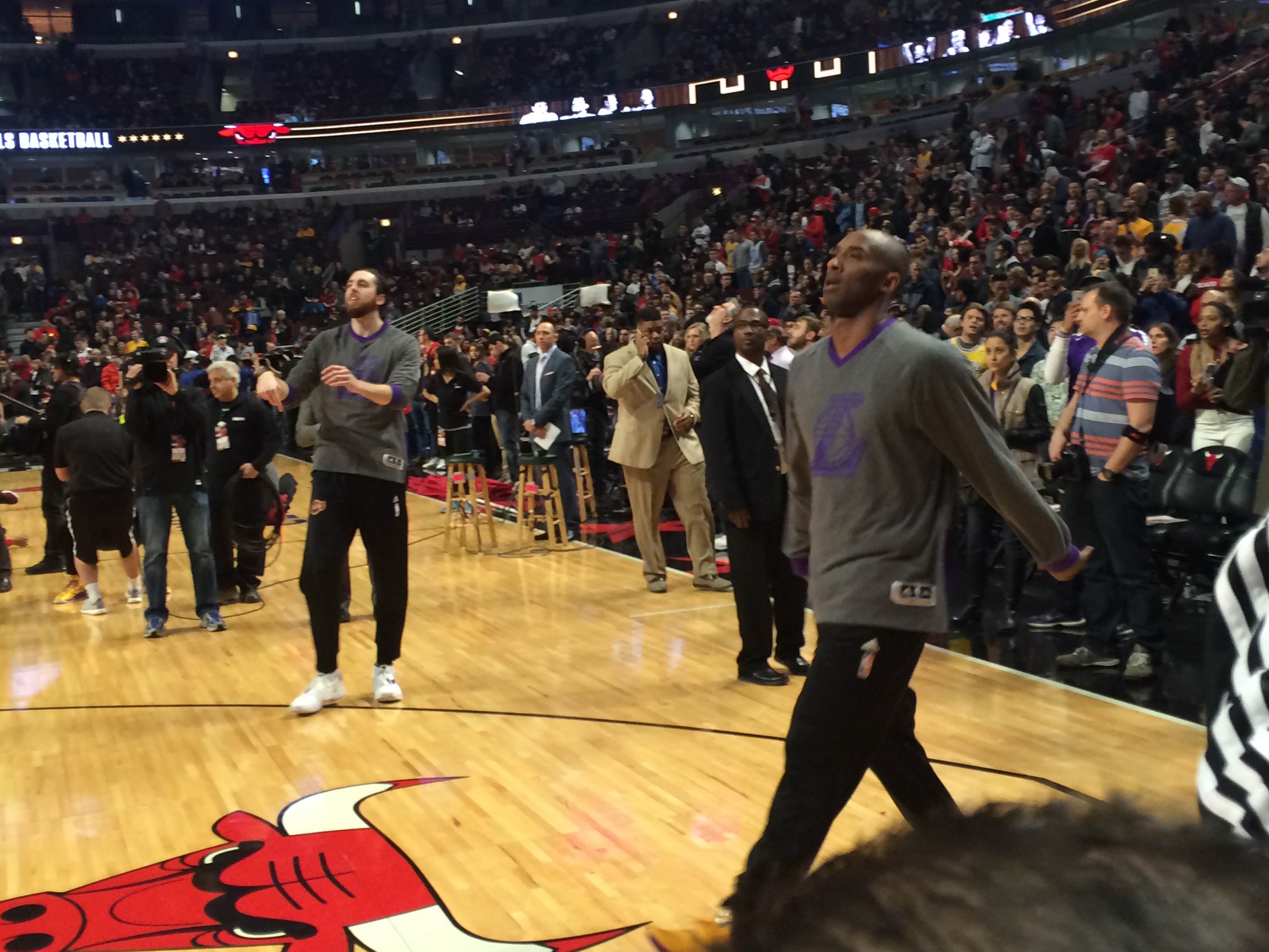 כיוון שהמקום שלי במהלך המשחק הוא קרוב לתיקרה, הייתי חייב למצוא דרך להישאר על הפרקט בהצגת השחקנים ולראות את המחווה שהבולס מתכננים לקובי ממרחק מטרים.