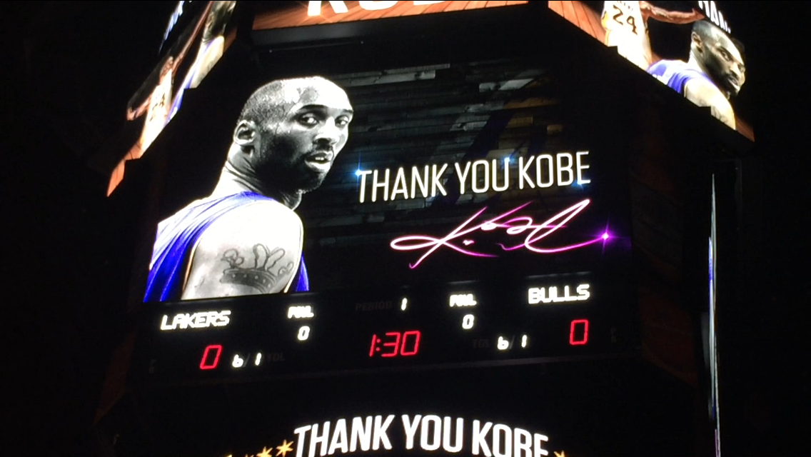 מיד לאחר מכן היה חושך בכל האולם והוקרן סרט מחווה בו כל שחקני הבולס מדברים על קובי, כמה היילייטס ולבסוף פאו גאסול מופיע ומברך את חברו הטוב.