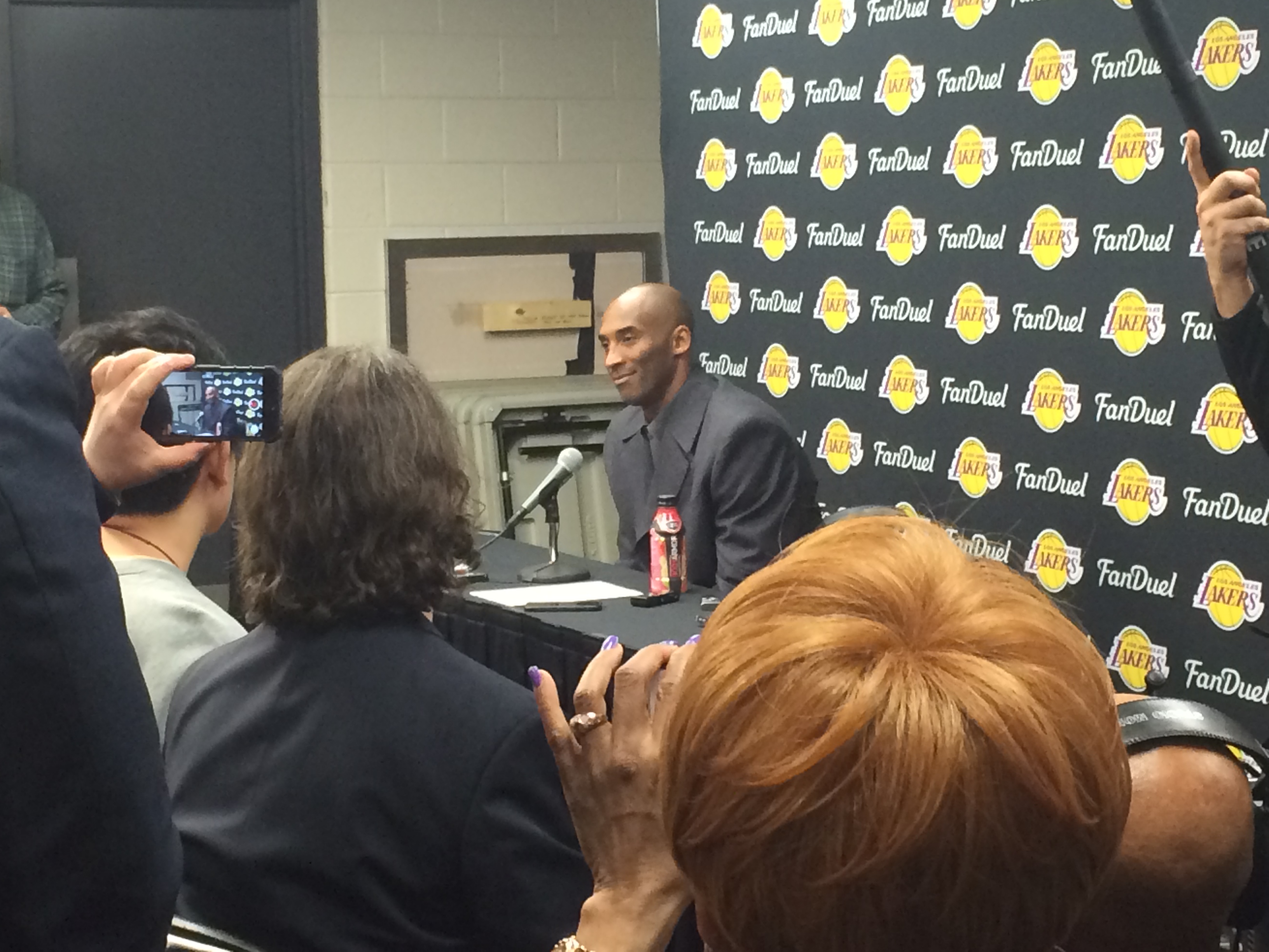 לאחר שהויברג סיים לדבר, אט אט התאספו להם עוד ועוד אנשי תקשורת שחיכו לאיש הערב – קובי בראיינט.