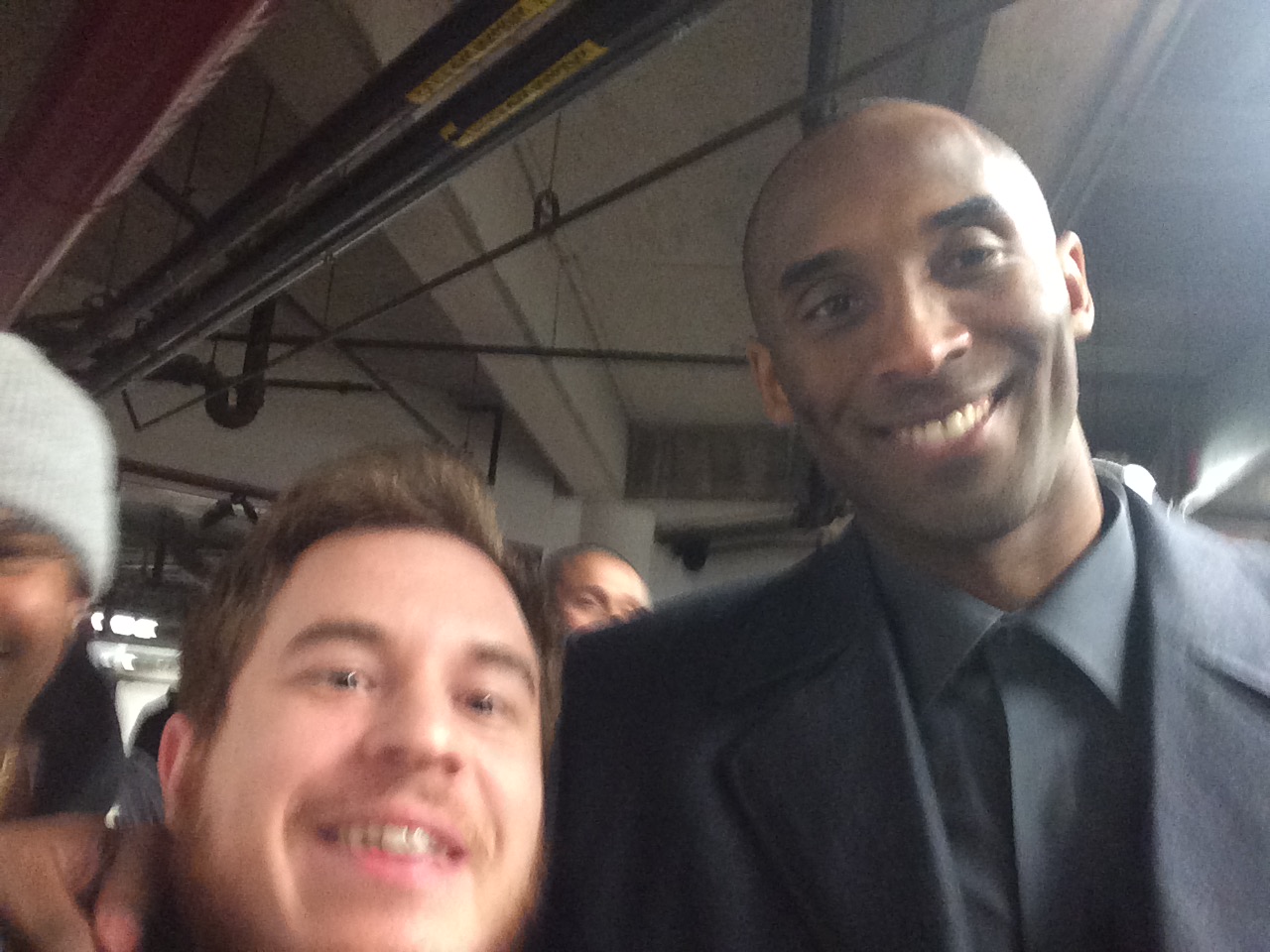 כשהחל ללכת במסדרון לכיוון האוטובוס חיכו עשרות אוהדים שניגשו או עמדו ליד הגדר כדי להצטלם איתו. קובי היה נחמד ועצר כמעט לכולם. מה שהיה הכי בולט לעין הייתה העובדה שלא היה ילד אחד שלא זכה לתשומת לב מהאגדה.