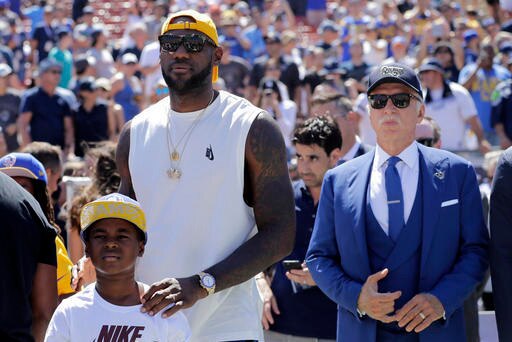 הקבוצה עברה מסיינט לואיס ללוס אנג'לס, ול'עיר המלאכים' (עיר מלאכים מיי אס) ישנה סוף סוף קבוצת כדורגל. לברון שחושב שהוא נעשה שחקן סרטים הוליוודי מן השורה מצא לנכון להופיע למשחק הפתיחה כמחווה לעיר. אז כיצד כינו את המשחק כשלברון החליט שהוא יופיע עם בניו למשחק הפתיחה נגד אטלנטה? (שלוס-אנג'לס ראמס הפסידה כמובן 35-28)? "LEBRON AT RAMS".