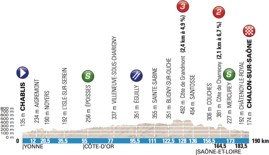 קטע 3 היום, בן 190 הק"מ, הוא גם בעל פוטנציאל להסתיים במיאוץ המוני, אלא ששני הטיפוסים הקצרים לקראת סופו עשויים להקשות על המאיצים וקבוצותיהם. לפיכך ייתכן בהחלט שנקבל כאן מנצח מקבוצת בריחה. בנוסף, התחזית היא לגשמים לאורך הקטע, כך שהכאוס שראינו בקטעים הקודמים צפוי להמשיך. שידור ביורוספורט החל מ-16:30.